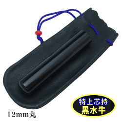 認印 黒水牛 12.0 ミリ丸 牛革袋付き